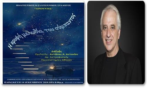Διάλεξη δρ. Αντ. Αντωνίου με θέμα: “Η κρυφή μελωδία του σύμπαντος”,  την Παρασκευή στην Καλαμάτα