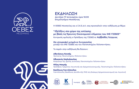 Με αφορμή τη συμπλήρωση 100 χρόνων συνεχούς παρουσίας και προσφοράς της Ομοσπονδίας Επαγγελματιών, Βιοτεχνών και Εμπορικών Σωματείων Μεσσηνίας (1926–2026), η ΟΕΒΕΣ Μεσσηνίας και ο Σύλλογος Καταστημάτων Εστίασης & Αναψυχής Καλαμάτας, συνδιοργανώνουν μια εκδήλωση με θέμα τις εξελίξεις στον χώρο της εστίασης.
