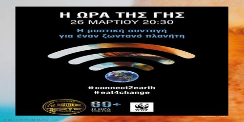 Σε ανακοίνωσή του ο Δήμος Καλεί όλους τους δημότες να συμμετάσχουν στην «Ώρα της Γης» σβήνοντας ΣΥΜΒΟΛΙΚΑ τα φώτα του σπιτιού τους το Σάββατο 26/3 και ώρα 20:30 έως 21:30 για να ενώσουν τη φωνή τους με όλους τους ανθρώπους της γης για την προστασία της φύσης.