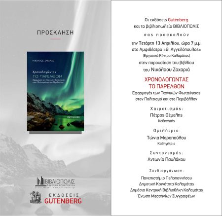 Την Τετάρτη 13 Απριλίου 2022 στις 19:00 στο Αμφιθέατρο «Θ. Αγγελόπουλος» του Εργατικού Κέντρου Καλαμάτας, θα φιλοξενηθεί η παρουσίαση του διεπιστημονικού βιβλίου «Χρονολογώντας το Παρελθόν» του καθηγητή του Πανεπιστημίου Πελοποννήσου Νικόλαου Ζαχαριά.