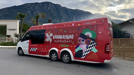 Σε συνεργασία με το Αστικό ΚΤΕΛ Καλαμάτας, το οποίο παραχώρησε δωρεάν ένα από τα αστικά λεωφορεία του, ένα λεωφορείο της πόλης «ντύθηκε» στα χρώματα και το ύφος του Καλαματιανού Καρναβαλιού, μεταφέροντας το μήνυμα της γιορτής σε κάθε γειτονιά.