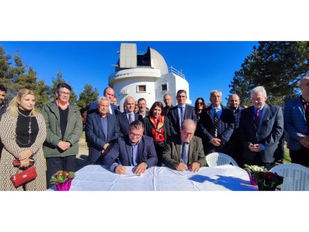 Η υπογραφή της σύμβασης έγινε στον πιο πάνω χώρο, όπου εκτός από τον περιφερειάρχη παρόντων, μεταξύ άλλων, των υφυπουργών Ερευνας και Τεχνολογίας Χρίστου Δήμα και Χωροταξίας και Αστικού Περιβάλλοντος Νίκου Ταγαρά, καθώς και του διευθυντή και προέδρου στο Δ.Σ. του Εθνικού Αστεροσκοπείου Αθηνών Μανώλη Πλειώνη, επικεφαλής αντιπροσωπείας του ΕΑΑ, στο οποίο υπάγεται το Αστεροσκοπείο Κρυονερίου.