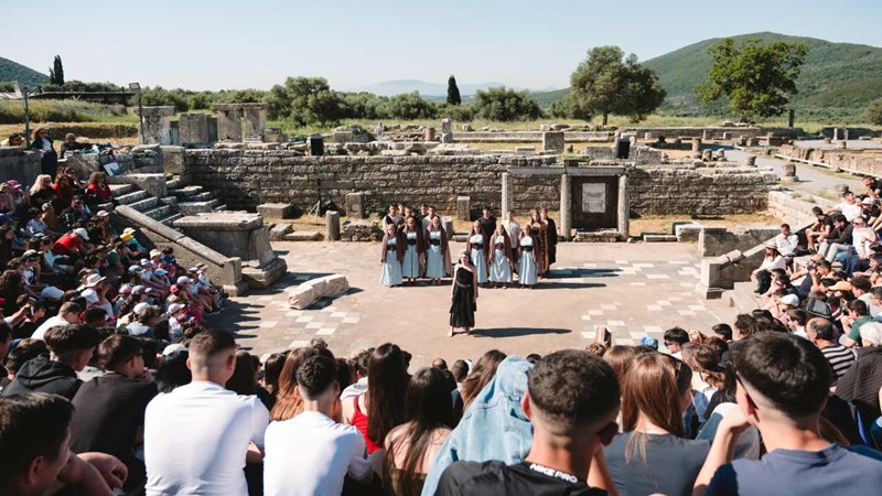 ΑΡΧΑΙΑ ΜΕΣΣΗΝΗ – Η μαθητική κοινότητα έδωσε δυναμικό «παρών» στις κερκίδες του αρχαίου μνημείου. Συγκεκριμένα, την παράσταση παρακολούθησαν μαθητές από σχολεία της Μεσσηνίας (Λογγά, Πεταλίδι, Μεσσήνη, Αρφαρών, Καλαμάτα), της Λακωνίας (Μονεμβασιά), αλλά και της Αττικής (Παλαιό Φάληρο, Βριλήσσια).