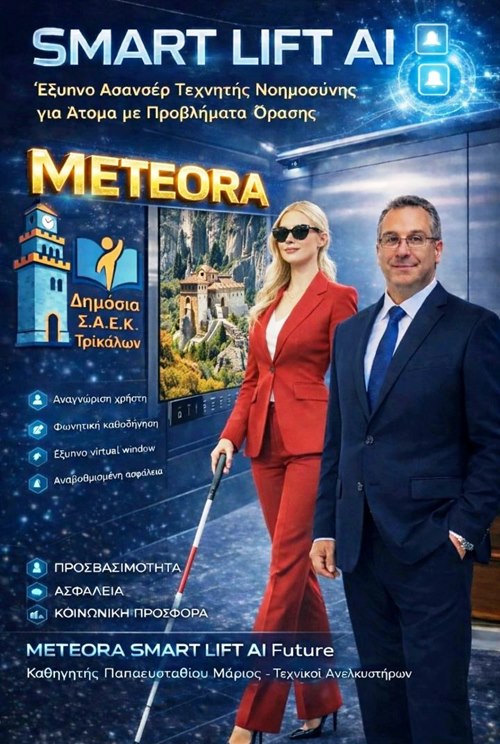 Σε μια εποχή όπου η ραγδαία εξέλιξη της τεχνολογίας συχνά προσφέρει θαυμασμό χωρίς ουσιαστικό κοινωνικό αντίκτυπο, μια πρωτοποριακή δράση από τα Τρίκαλα έρχεται να ανατρέψει τα δεδομένα. Ο διακεκριμένος Καθηγητής Οικονομίας και Νέων Τεχνολογιών, Μάριος Παπαευσταθίου, παρουσίασε μαζί με τους σπουδαστές της ειδικότητας «Τεχνικός Ανελκυστήρων» της Δημόσιας ΣΑΕΚ Τρικάλων (πρώην ΙΕΚ), το καινοτόμο έργο «Meteora Smart Lift AI Future». Πρόκειται για ένα έξυπνο σύστημα ανελκυστήρα που χρησιμοποιεί την Τεχνητή Νοημοσύνη για να προσφέρει πλήρη αυτονομία, ασφάλεια και προσβασιμότητα σε άτομα με προβλήματα όρασης.