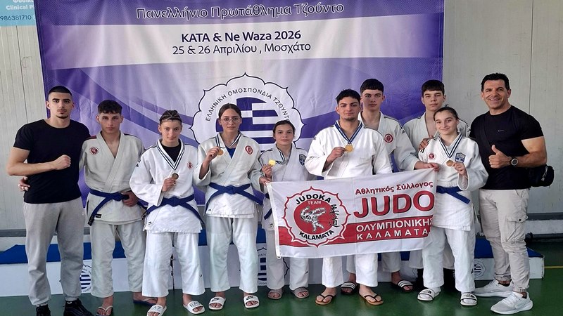 ΚΑΛΑΜΑΤΑ – Μια ακόμη θεαματική παρουσία πρόσθεσαν στο ενεργητικό τους οι Judokas του «Ολυμπιονίκη Καλαμάτας», επιβεβαιώνοντας την κυριαρχία του συλλόγου σε εθνικό επίπεδο. Την Κυριακή, 26 Απριλίου 2026, οι αθλητές της μεσσηνιακής πρωτεύουσας συμμετείχαν στο Πανελλήνιο Πρωτάθλημα Τζούντο “Ne Waza” (πάλη εδάφους), που διεξήχθη στο κλειστό γυμναστήριο Μοσχάτου.