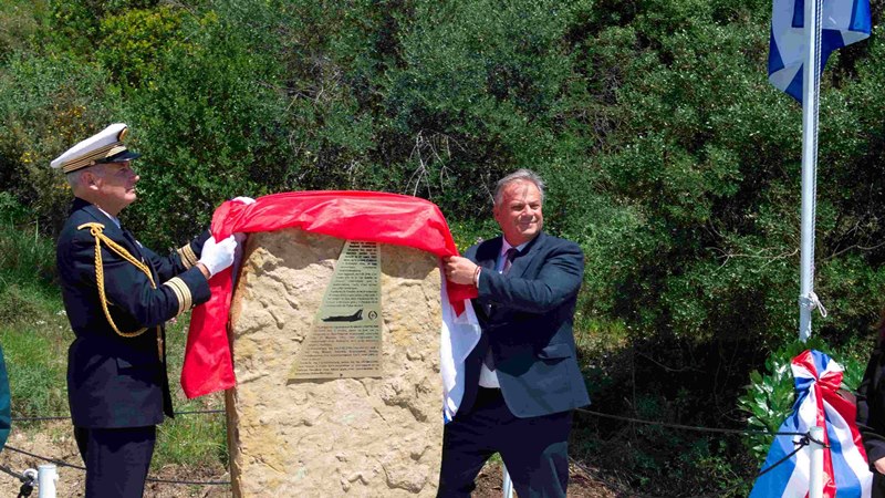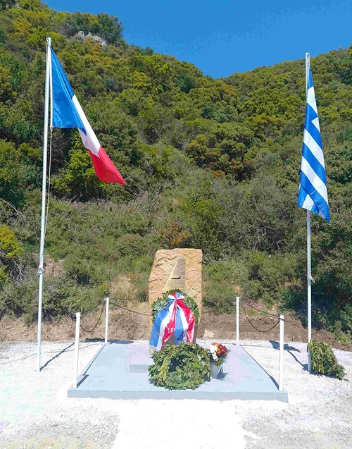 Ο Ακόλουθος Άμυνας της Γαλλίας, Πλοίαρχος Arnaut Lacote, και ο Δήμαρχος Πύλου – Νέστορος, Παναγιώτης Καρβέλας, αποκάλυψαν την αναμνηστική στήλη. Σημαντικό είναι το γεγονός ότι η στήλη αποτελείται από φυσικό βράχο της περιοχής με μια μπρούτζινη επιγραφή σε σχήμα φτερού.