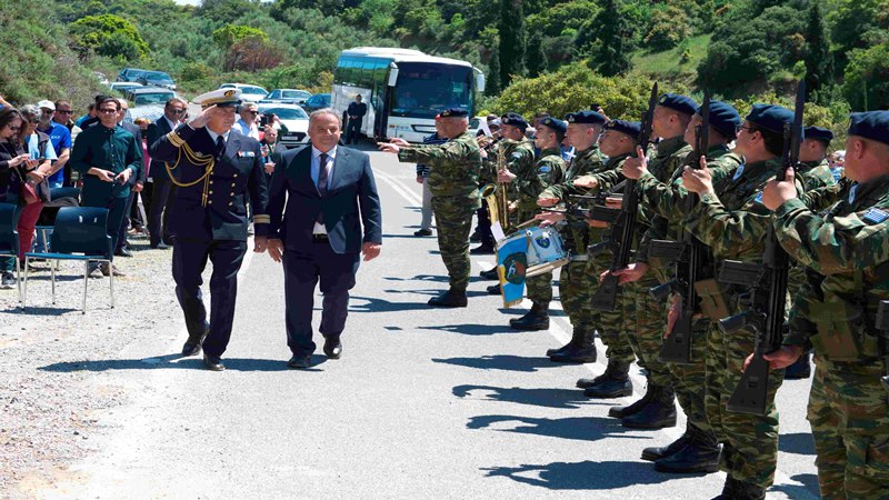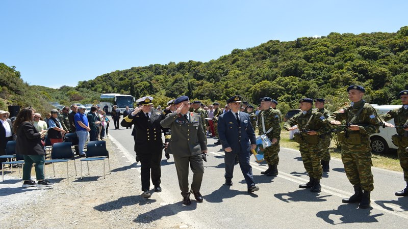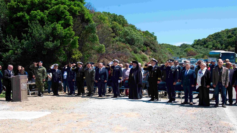 Η τελετή περιέλαβε επιμνημόσυνη δέηση και κατάθεση στεφάνων από εκπροσώπους των Ενόπλων Δυνάμεων και των Σωμάτων Ασφαλείας. Στη συνέχεια, η Φιλαρμονική των Ενόπλων Δυνάμεων ανέκρουσε τους Εθνικούς Ύμνους των δύο χωρών. Τελικά, η εκδήλωση ολοκληρώθηκε με τη φύτευση μιας δρυός, δέντρου με ιδιαίτερη σημασία στη γαλλική παράδοση. Με αυτόν τον τρόπο, ο βράχος και το δέντρο επισφραγίζουν τη σχέση μνήμης και εξέλιξης, αναδεικνύοντας τους ισχυρούς δεσμούς μεταξύ Ελλάδας και Γαλλίας.